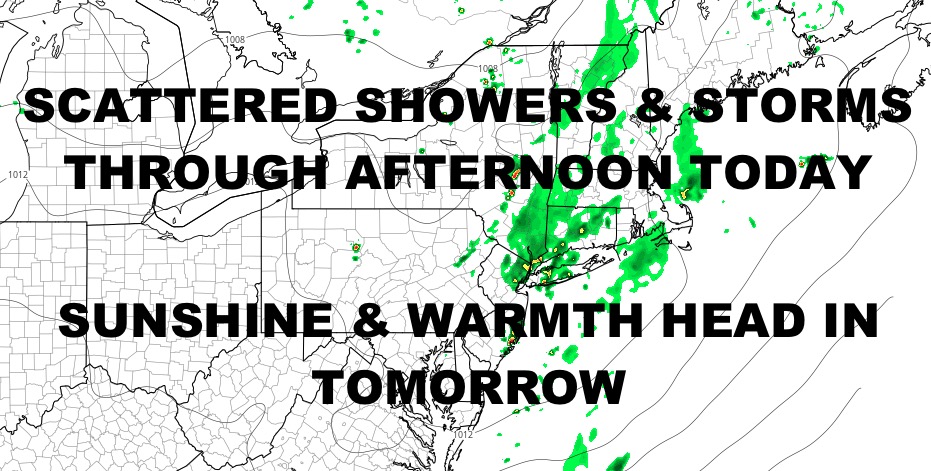 Good morning everyone. We have some heavy rain and thunder slowly drifting our way into the NYC area, then sunshine returns for a couple of days. We’ll also sneak in a hot one of Thursday before things cool off as our next system approaches for the weekend.