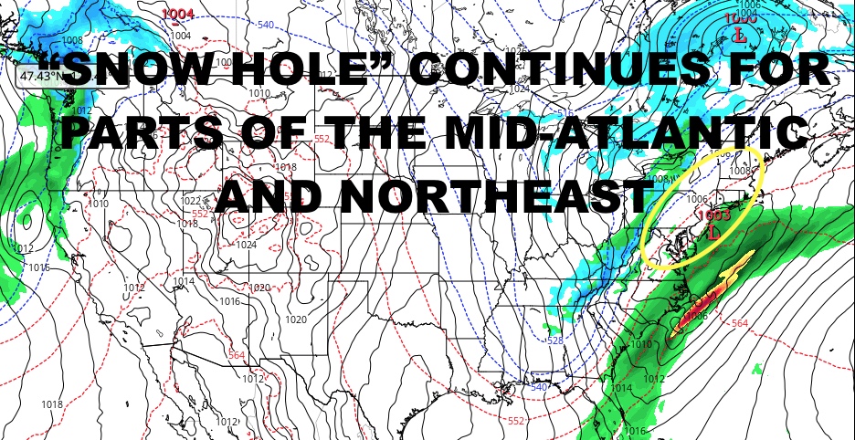 Good morning everyone and welcome back to the mild temps and still no real snow to speak of. We enter another quiet period which essentially brings us near to mid-February with nothing major on the immediate horizon. If things continue this way, we’ll need a late-season “big one” in order to make up for the snow “deficit”. We don’t have a moisture deficit through, with more rain expected on Thursday for a showery & mild day.
