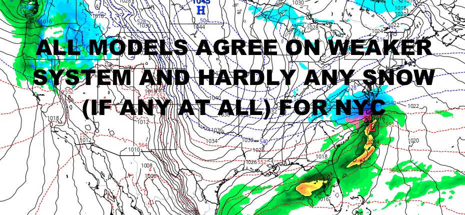 As of now, we’re probably looking at a 4-8/6-12″ type snowfall late Wednesday into very early Thursday as a very fast-moving low pressure fails to make a turn up to the Northeast. This will not only shorten the duration of the snow for the Mid-Atlantic, but it’ll also spare the NYC/Long Island area, including most of New Jersey, with either very light snow, or no snow at all.