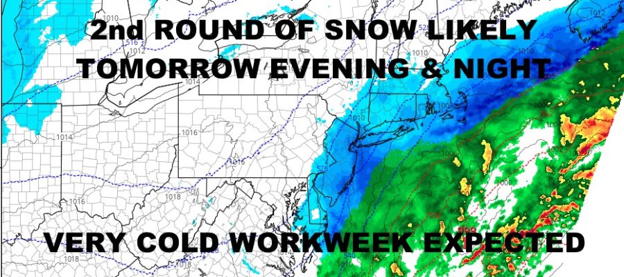 Snow returns tomorrow as moisture rides up the coast and a wave of low pressure develops “too late” and too far offshore. However, some of that moisture is trending westward, and we could see some accumulating snow. Look for a 1-3/2-4″+ type snowfall, with the best chance for heavier amounts in parts of Suffolk County.