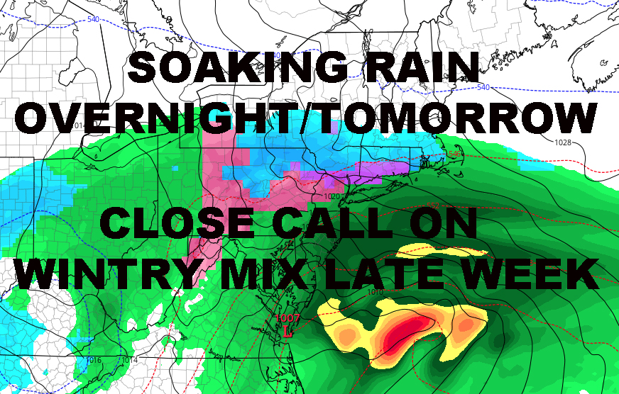 Good morning everyone. We have another soaker heading our way here in New York City, but not before we squeeze out one more decent day. Meanwhile, even colder air is heading our way. This could result in a brief wintry mix if timed right with stubborn-enough cold air, as yet another system approaches late week.