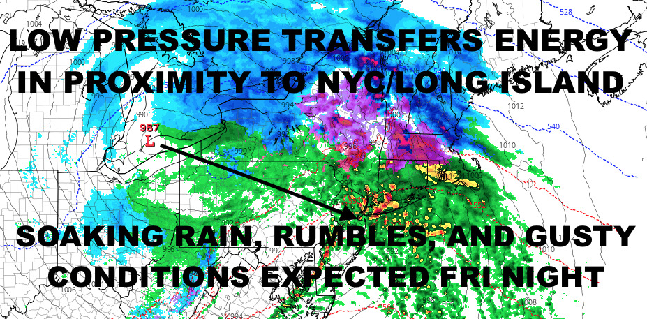 Good morning everyone. We have departing rain today with maybe even some sunshine as we go on, but it’ll be short-lived as clouds increase again ahead of a much more vigorous system. This one will take a similar track to the one that gave us some snow, however the area is transfers its energy to will dash any hope for some wintry precip in the NYC/LI region.