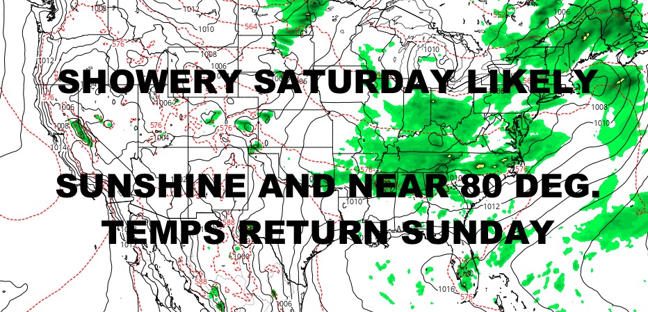 Clouds stick around for Saturday with on and off showers, then that front eventually makes its way through. It’ll be cooler, but still on the mild side with humid mid to upper 70’s. Sunshine returns on Sunday, with dry conditions and highs in the near 80 range.