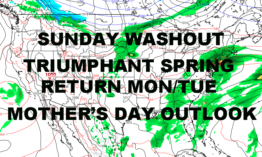 The question for Mother’s Day Sunday is, does that system depart Saturday night, or does it leave some time on Sunday. If it pulls out during Sunday, it’s probably a washout like this Sunday. If it’s gone by Saturday late night, then we could have a partial clearing-type situation with increasing sunshine as the day goes on.