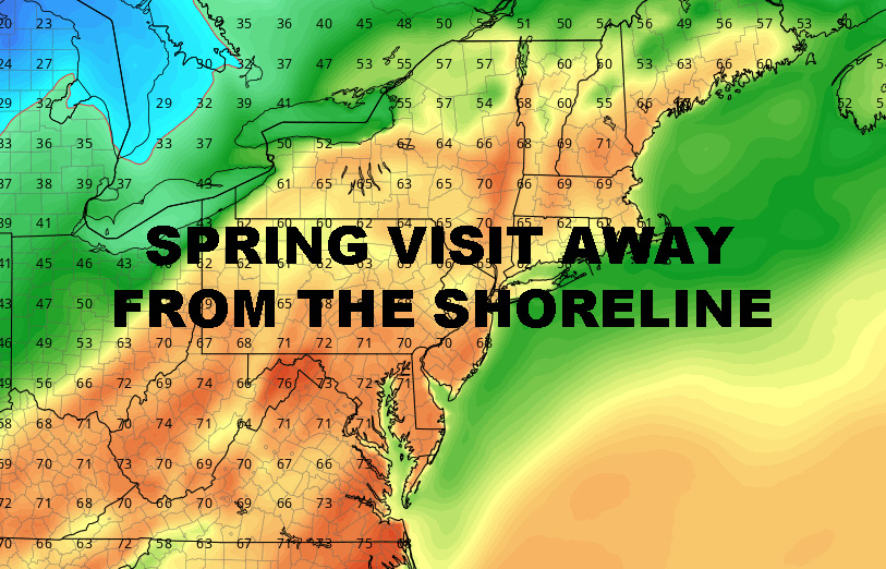 NYC SPRING TASTE AHEAD MINUS SHORELINE – Good morning everyone. Aside from areas with shadows, it’s hard to tell we got any snow Saturday night; and today’s mild temps with afternoon rain should finish the job on that chapter. The rain heading our way begins our trek towards a taste of spring, but not everyone will see it, so get ready to hear some complaining by your friends at the coast.