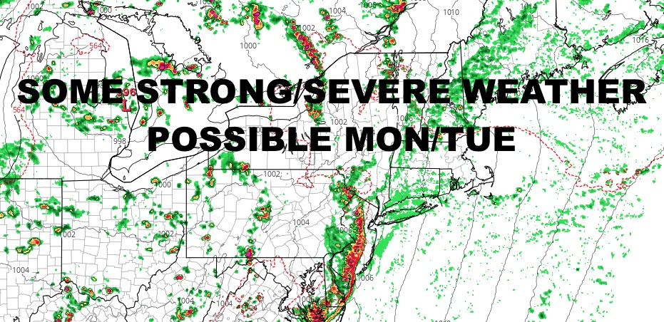 As Low pressure gets closer (but still off to our west) on Tuesday, we could see some widespread severe weather in the area. Right now it’s too soon to tell where the line will form and how many miles it’ll take up, but the potential is there to see a line from upstate NY all the way down to Maryland. Highs again near 80, and we’ll really have to watch that radar.