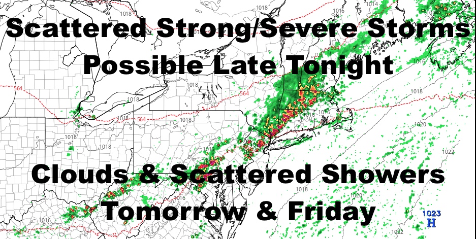 We have a mix of sun and clouds right now, with some low puffy clouds left over from last night’s fog. Those should burn off and we have a very warm on today. Look for a dry day precip-wise, and highs 85-90. The best chance to see a spot near 90, would be the Newark area of NJ, and downtown Brooklyn/central Queens.