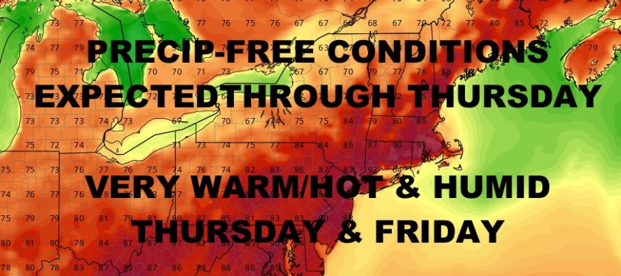 On Wednesday, we start to get in the very warm realm as highs creep up into the mid 80 range. We’ll also see a slight uptick in the humidity. Thursday is downright very warm/hot and humid, with highs in the upper 80’s to near 90.