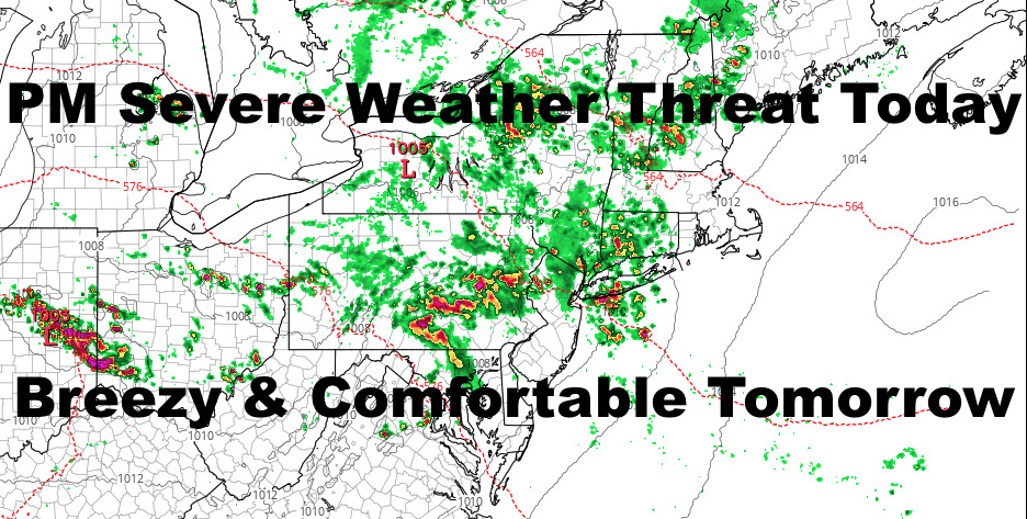 Good morning everyone. Technically we start the “break” today with cooler temps, but we won’t be getting a break from the weather overall. Severe storms are expected to pop this afternoon, and I’ll explain below how the action will most likely pan out across the NYC Metro Area. Comfortable weather rushes in tomorrow, and I think overall summer takes a week or so off, before it resets and we potentially see some of the hottest weather this season during the 2nd week of August, onward.