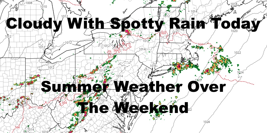 Good late morning everyone. Our clouds and showery weather arrived with little fanfare as expected, and we aren’t expecting any complete washouts today. We’re in the process of pivoting towards some deep summer weather, which is expected to last thru at least mid-week next week.