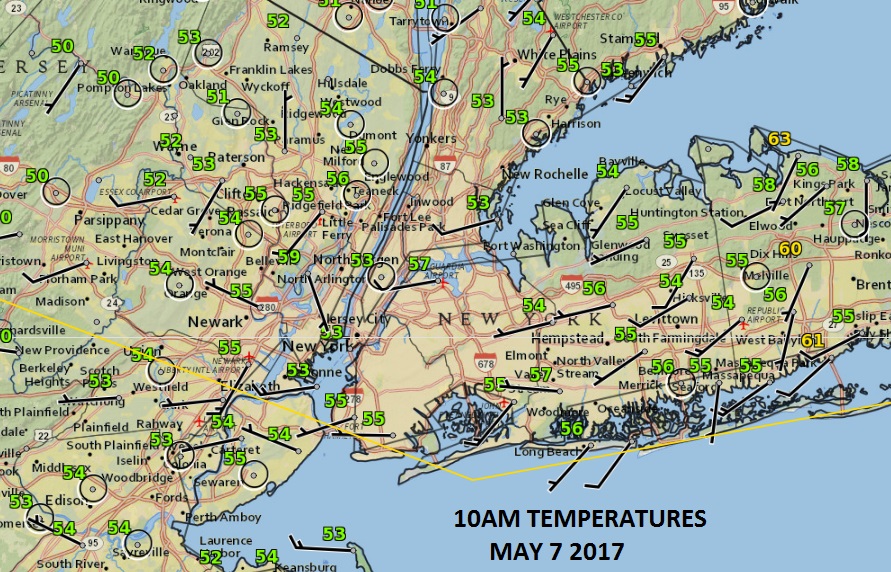 NYC SUNNY MORNING SURPRISE CLOUDS RETURN SOON – Good morning everyone! We woke up to a nice surprise with some morning sun, but clouds will return this afternoon for a mix of sun and clouds and a rather cool day. Along with the cloud cover is a slight chance of some showers, similar to what happened to us yesterday evening. We’re not talking a washout and also not everyone will see raindrops, highs near 60. Tonight, we dip into the low 40’s and areas N&W of the NYC area as well as typically cooler areas out on Long Island, may see some frost.