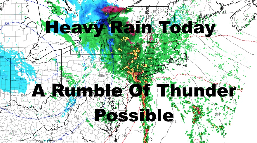 Expect rain, heavy at times beginning over the course of the next few hours. If you hear a rumble of thunder out there, don’t be surprised either as low pressure intensifies. Localized flooding is possible in poor drainage areas. Highs today will be in the mid to upper 40’s.