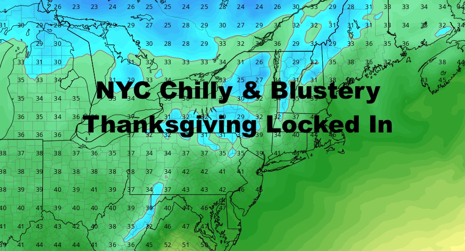With that front passing through late Wednesday/Wednesday night, colder air will rush in for Thanksgiving, as well as blustery conditions. The typical wind limits for these balloons are 23mph sustained to ground them. As for now, I’ll say they’ll fly, but may be kept lower than usual. Highs Thursday will be in the low to mid 40’s with sunny skies, but in the 30’s for the parade start.