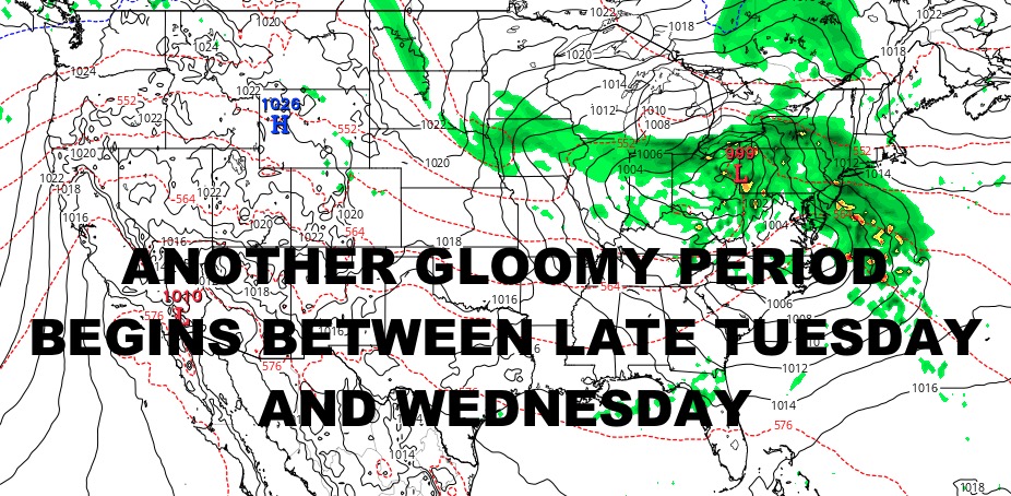 Sunshine remains for Monday and Tuesday, with 70-75 degree temps. Clouds roll in Tuesday night, and another rainy period begins Wednesday.