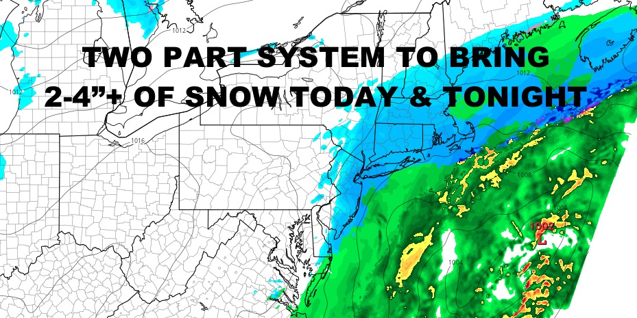 Good snowy morning everyone. Light to moderate snow is falling across the NYC Metro area for the first round of a two-part system. We’re not expecting anything crazy accumulation-wise, but we are slowly inching towards the seasonal average as a cold and somewhat active winter continues.