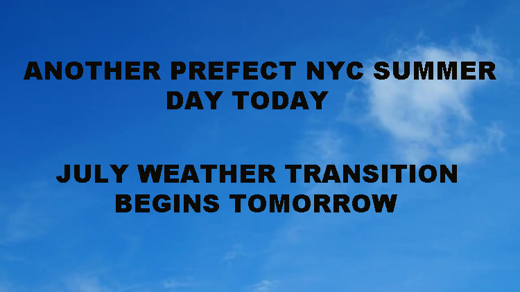 Good morning everyone. After a horrible stretch of NYC gloom, with people wondering if summer is actually around the corner, we’ve been about to find 2 1/2 perfect, comfortable, and seasonable days in a row. We’ll add to that stretch today with another warm and dry day, then we begin our transition towards more of a typical NYC summer setting.
