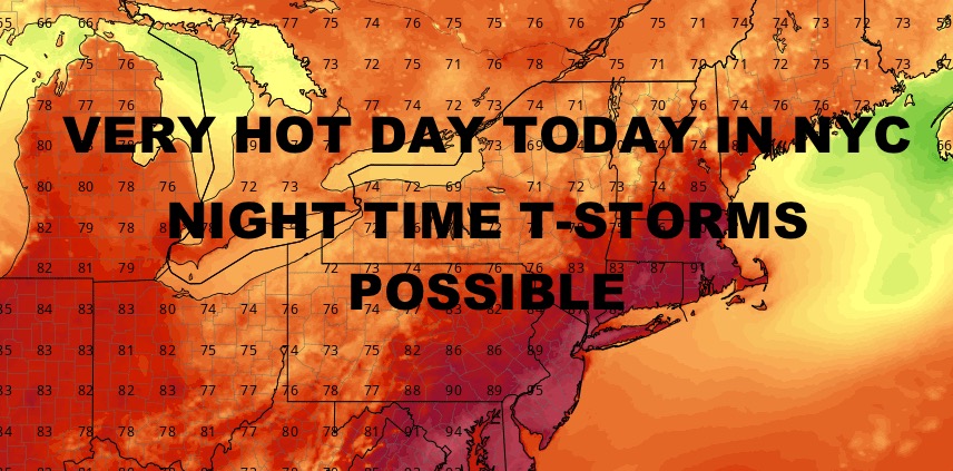 Look for sunshine/hazy sunshine today with highs in the mid to upper 90’s. It’ll be slightly cooler at the shore, but not by much. A wave of energy will swing by this evening or into the overnight hours and that’ll spark some scattered storms throughout the area. Some of these storms could reach severe limits.