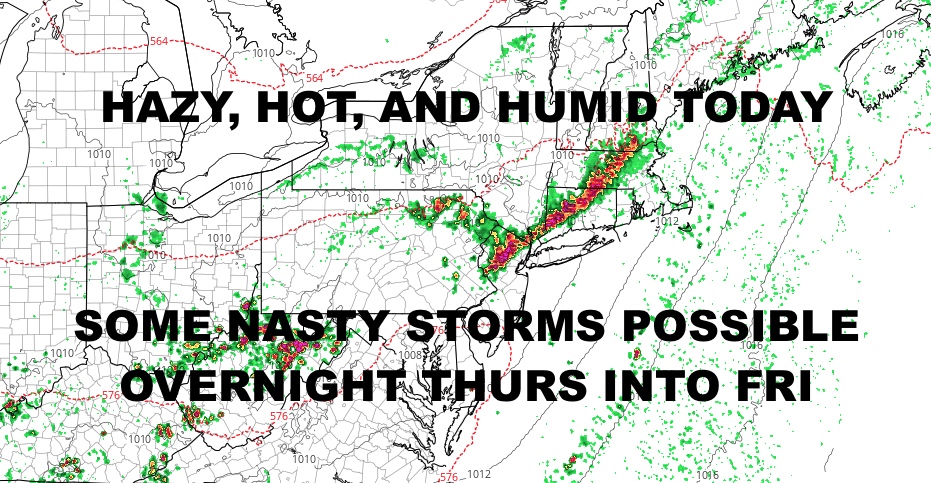 Good afternoon everyone. Out hot day is underway as temps have already reached 90 degrees in most spots and headed for mid 90’s in many locations. We also have air quality alerts due to the hot conditions and light winds, allowing that pollution/haze to build and stick around. We keep the heat and air quality issues tomorrow, then we’ll be watching overnight for some nocturnal severe weather and heavy rain. Overall, we begin the warmest/hottest stretch of this summer so far, and again, we’ll be looking for a possible heatwave in the 3rd week of July.