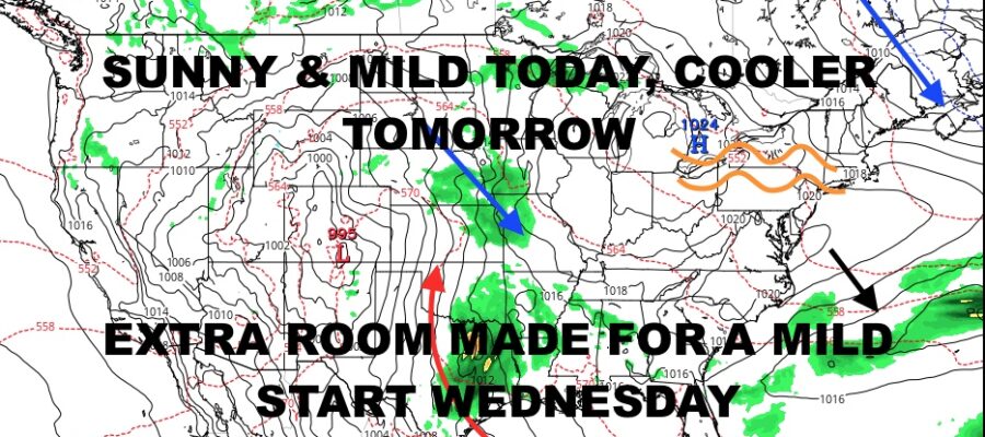 Good morning everyone. We have ourselves a beautiful day today, then a brief pause in the form of clouds and cool temps tomorrow. We’ll climb out of it a day earlier than expected, and this is what our forecasting looks like during a pattern like this; finding opportunities that pop up when they do,