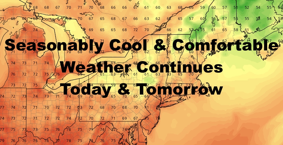 Good morning everyone. We continue to dry out under sunshine and seasonably cool temps. There’s not much going on, and I don’t mean “temporarily” in an ominous way for our headline. Our area in the Northeast remains pretty quiet for the next week or so, with little in the way of organized, big duration rains; and that’s a good thing.