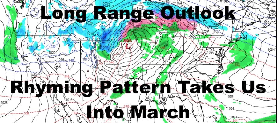 We’ll take that quiet weather all the way into the beginning of next week. A couple of minor disturbances may touch off a few sprinkles or flurries, but we don’t seen anything “major” going on till the first weekend in March. We’ll be keeping an eye on a Great Lakes runner that’ll probably bring us some rain at some point, and that’ll start a parade of systems with rhyming paths.