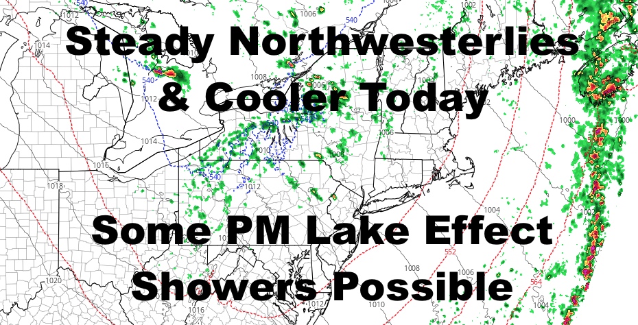 Look for sunshine, stiff northwesterlies, and highs in the mid 60’s. We could see a scattered shower if the Lake Effect is able to make the trek. Overnight we drop into the upper 40’s for a little chill in the air, slightly lower away from the City.
