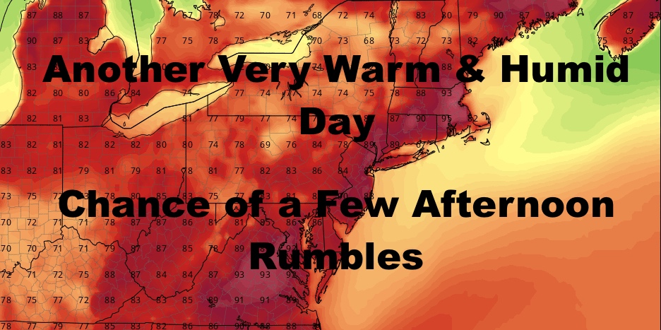 For today, look for sun & clouds, humid conditions, with the chance of afternoon showers and storms. Some of those storms may be on the strong/severe side. We’ll be keeping an eye on that radar to see where they pop up and where they go. Highs in the mid to upper 80’s, cooler along the immediate shore.