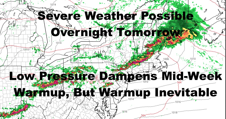 Good late morning everyone. We are fully into our transition to more spring-like or even summer-like weather, but there are going to be baby steps and hiccups along the way. First will be a warm & humid day with a price to pay tomorrow, a beautiful day Saturday, but it can’t hold together as cooler air sneaks in. Warmer air tries to return mid-week, but a coastal low/cut-off low squashes that idea; although that warm is coming regardless, just delayed.