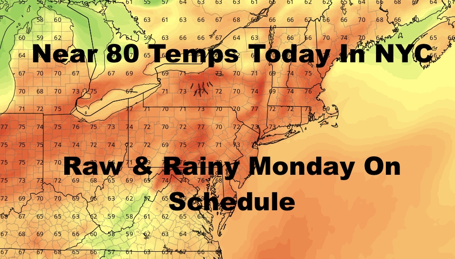 Mostly sunny skies, a nice breeze, and near 80 temps pay a brief visit today before we cool off somewhat tomorrow. Some inland spots may break the 80 mark, and areas by the immediate shore will stay in the low to mid 70’s.