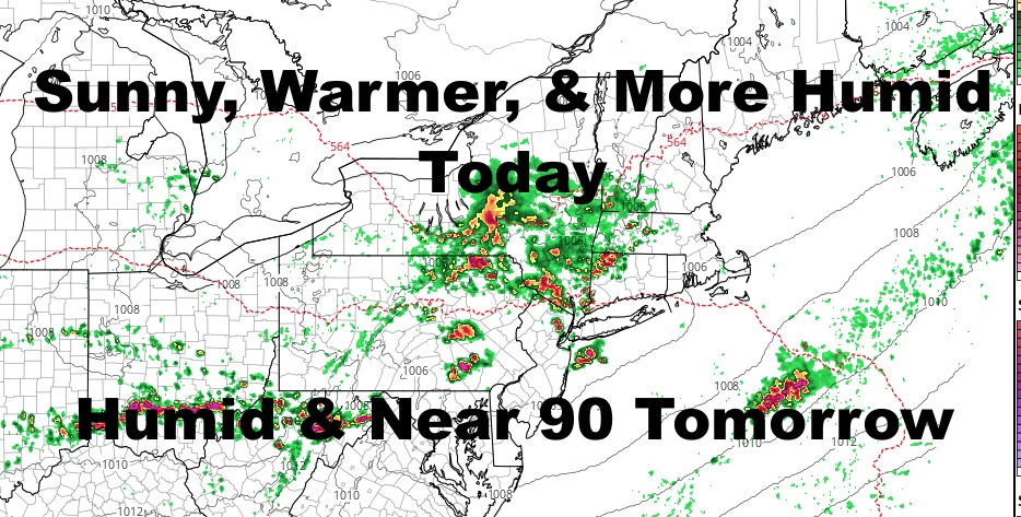 Good morning everyone. We’re on day 3 of a really nice, precip-free stretch, but warmer air is creeping in as is the humidity. We’re back in full summer-mode tomorrow through Monday, then watch for the timing of a front for Tuesday.