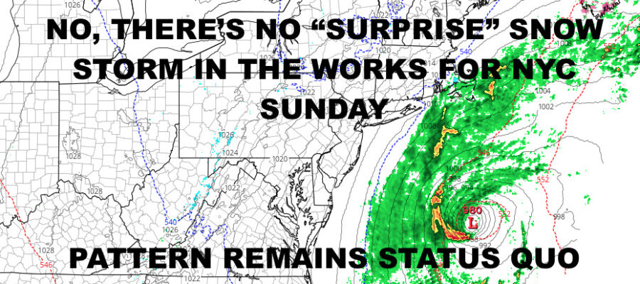 Clouds may increase slightly on the ESE horizon on Sunday as low pressure wants to brush us, but won’t get close enough. The best chance to see any fringe effects, will be out on the South Fork of Long Island with cloudy skies and the slight chance of some showers or snow showers. Little to no accumulation is expected, if this even happens at all. That being said, it’ll help keep the winds in the area, with highs in the upper 30’s to near 40.