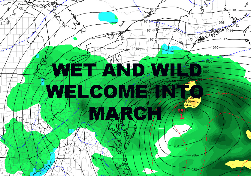 Sun and 50’s remain through mid-week, until we cloud up and rain begins to move in mid to late Thursday. This is in association with a system that’ll head up into the Great Lakes region, then try to transfer its energy to the coast. Rain and wind will be the first issue, then with the full moon in conjunction with a coastal low that may cut itself off for a few days, may cause some big issues with coastal flooding in the usual flood-prone areas. We’ll also have to see how strong the low gets, because high winds could easily topple trees due to the ground being so saturated and the soil being soft.