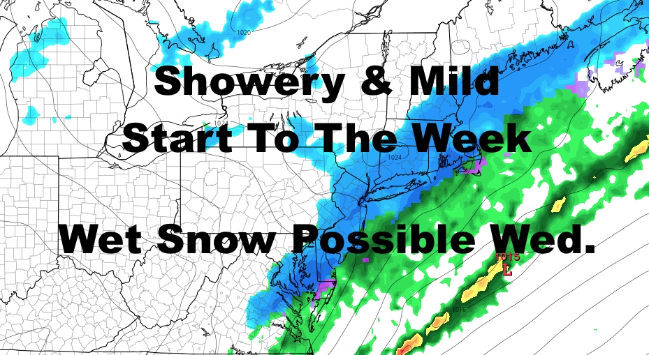 Any snow that does fall, will be wet in variety, falling onto wet ground, and after upper 50’s to low 60’s 12-18hrs prior. We also won’t dip below freezing as highs go for the mid to upper 30’s Wednesday. This all leads to a cheap thrill, if any thrill at all.