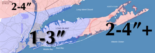 Here is my initial snow map for this event. Some adjustments will probably need to be made, especially for the east end of Long Island as we wait to see how robust our departing wave is; if robust at all. However, this is what I see as of this very moment and if things were to hold steady.