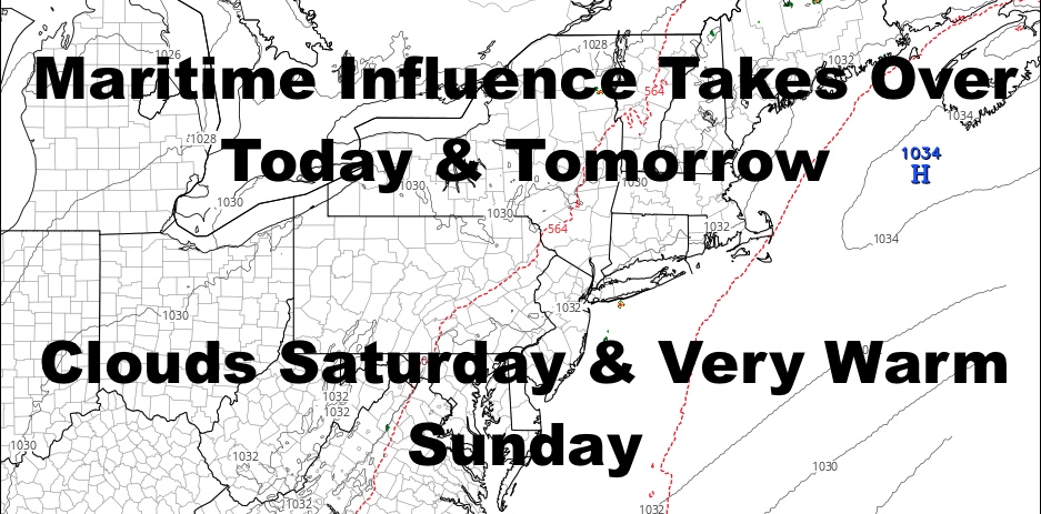 Cooler air arrives a little earlier with upper 80’s and 90 degree temps from yesterday, dipping into the 70’s today as that maritime flow takes over. Expect mid to upper 70’s today in the NYC area, however, parts of Long Island (specifically south facing shores and the east end) may not get out of the mid 60’s.