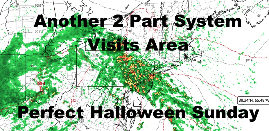 As low pressure movies well into New England and Canada, it’ll leave a soft cushion of sinking air south of it. This will open up the window for clearing skies on Halloween Sunday, a gentle westerly breeze, and highs 60-65. While we’ve had warmer Halloweens in the past, this is about as good as it normally gets this time of season. Enjoy!