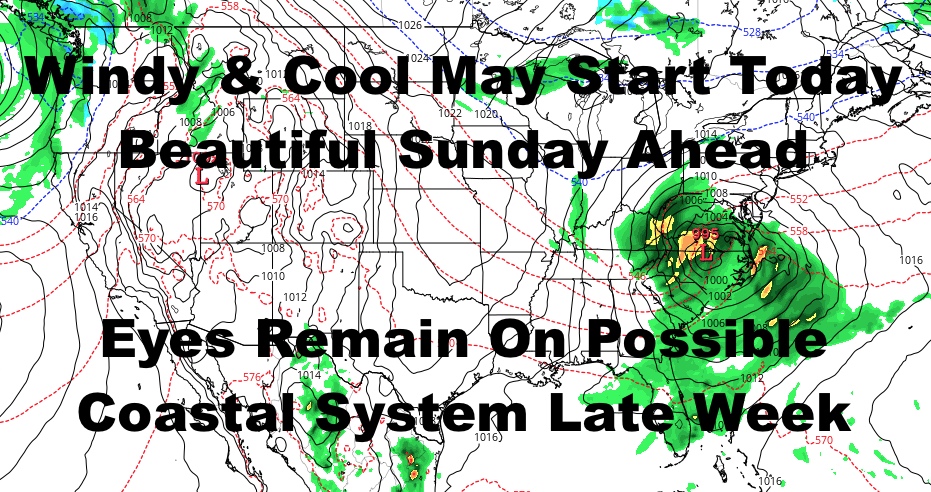 If things remain steady, we’ll be watching a window between late Thursday into Saturday morning for a possible coastal system. Dare I say the word Nor’Easter? Most associate Nor’Easters with snow, but they can happen any time during the year, and I specifically remember working a July Nor’Easter in 2009 with a nasty day in the 50’s. It happens, so we’ll be watching to see if all of the ingredients come together.