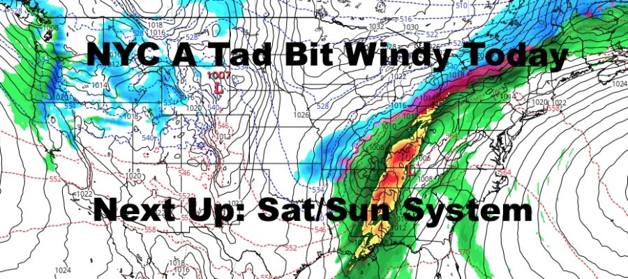 We have a windy one for today, then milder air heads in ahead of a broad system after a cold one tomorrow.