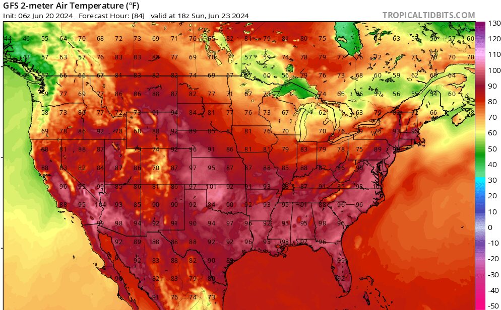Hot air continues to get hung up along the East Coast and into the Northeast & New England, with 90+ degree temps a common experience even up into Maine. With no true end in sight, we could be dealing with one of the hottest Junes on record if this keeps going. At minimum, 90’s hold on tight through Monday or Tuesday, then a possible break before 90’s return again.