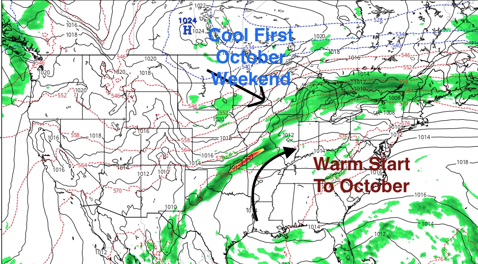 Hello Angry fans. For those who follow Angry Ben on Facebook, my relief spot in the rotation is coming an end with The Angry One returning on Sunday. I have two more days of typing, and his spirit is with me as I wrap up my tenure. The quiet period continues with a lack of any significant rain or action, and Angry Ben looks like he scores another Hail-mary touchdown. Mid-week next week, the start of October, could see some mid 80’s. On the opposite end of the spectrum, he also advised me on a brisk weekend possible, and that’s looking like a very strong bet as well.