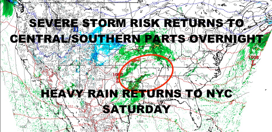 After that, heavy rain and rumbles enter the Southeast, then race back into the Ohio River Valley and the Northeast into New England for Saturday and Sunday.