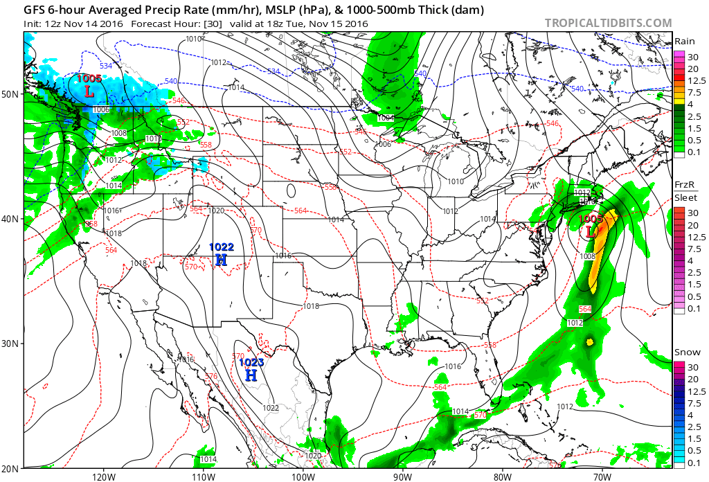 Rain New York City Tonight – Current radar shows an area of much needed light to moderate rain working it’s way up. There’s a few heavier embedded showers along the southern NJ coast. A few areas in NYC could see a half inch of rain depending on where the area transits. Elsewhere will see approx. 1/4 to 1/3″ of rain.