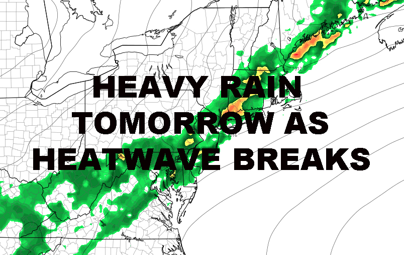 SEVERE STORM THREAT DIMINISHED BEAUTIFUL WEEKEND AHEAD – Good morning everyone. As promised, we stayed dry in NYC last night for perfect firework weather and unauthorized climbing of statues. The heatwave comes to an end tomorrow with a round of heavy rain, and we have a beautiful stretch ahead before the heat tries to return.