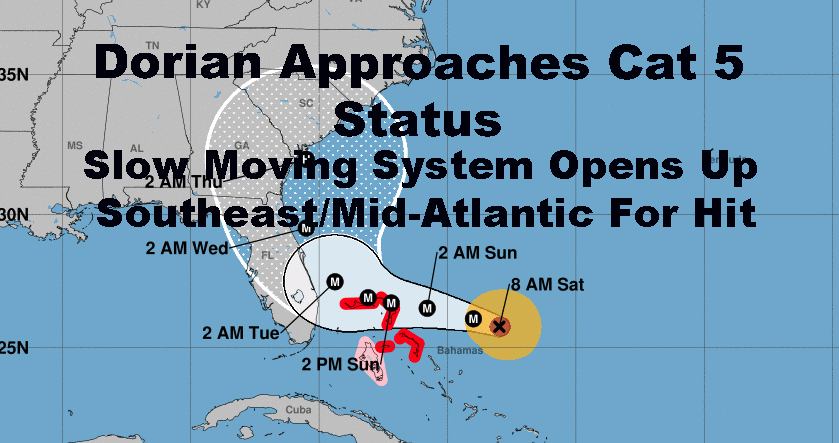 Good morning everyone. We continue to watch Hurricane Dorian evolve and frustrate many with its slow movement. The slower it goes, the more everything changes due to the movement of all of the steering features elsewhere throughout the Country and the Atlantic. This opens up more parts of Southeast, while sparing others from last minute surprises.