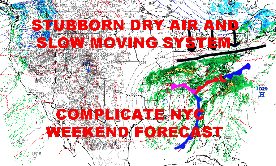 Good morning everyone. If you take a look back at my previous forecasts the last few days for the New York City area, everything is unfolding the way it was expected in my mind. Add a new feature into the mix, stubborn dry air, and it completes the circle of how tough this forecast really is.