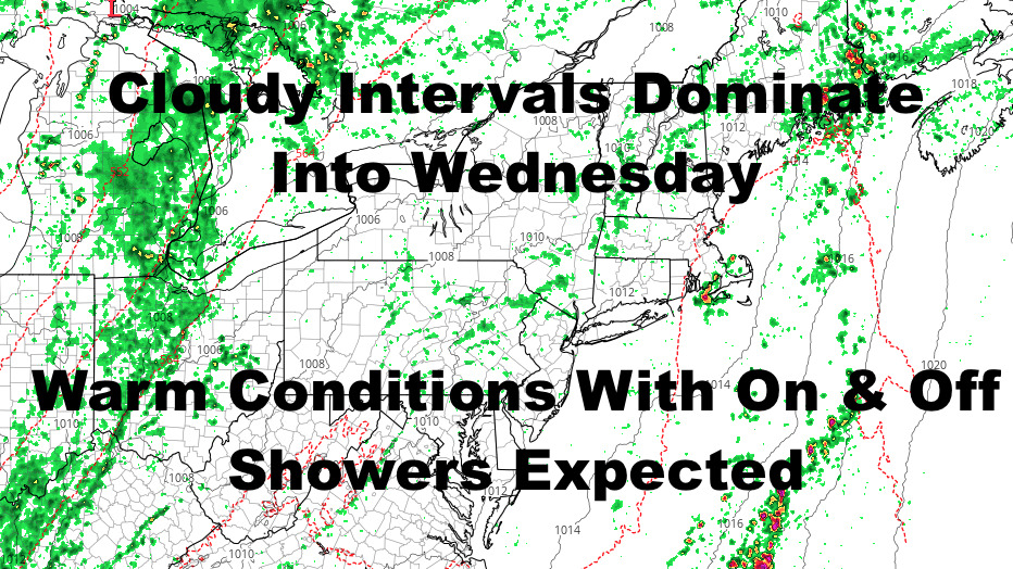 Good morning everyone. As promised, moisture has increase along the East Coast, and clouds are the result of the changes going on. We won’t be cloudy all day every day, but clouds will dominate over full sunshine. Making the best out of the blue patches we get, will be the name of the game through Wednesday.