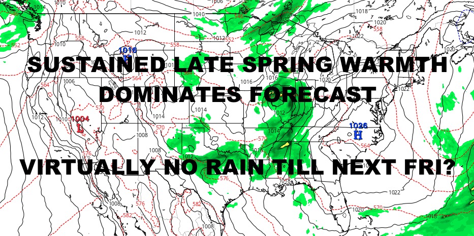 Highs pressure looks to dominate a big stretch for the East Coast, including the NYC Metro area where we could go 7-8 days without any organized rain. On top of it all, the big story out there will be sustained spring air instead of temps below average. Things climb gradually the next 2 days, then we are a seasonable near 80 for a long stretch; something we haven’t seen in a while.
