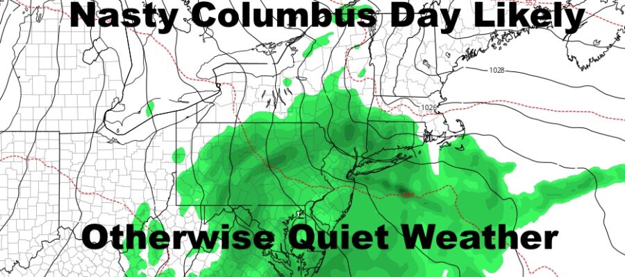 Nasty Columbus Day Monday Likely Good morning everyone. We have a lot going on, and nothing going on, all