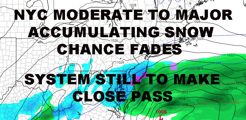NYC BIG SNOW CHANCE FADES AS STORM MAY SLIGHTLY GRAZE AREA