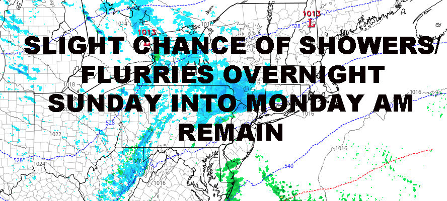 NYC SUNDAY MONDAY FLURRY SPRINKLE POSSIBILITY REMAIN Good morning everyone. Leftover clouds and sprinkles are hanging on early this morning